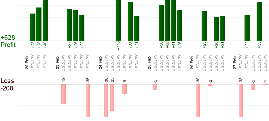 A ordem pendente deverá ser colocada assim que chega o sinal (no parâmetro "De"). O parâmetro "Até" foi desenhado para forçar a saída. Qualquer negociação aberta tem que ser preenchida até ao final do "Até". Quando o "Até" termina, a ordem será cancelada. Use trailing-stop para maximizar o lucro.